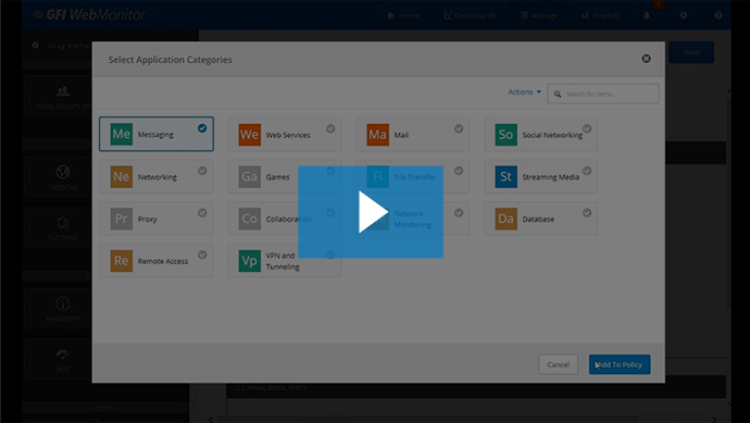 More infoGFI WebMonitor can block web applications by name and category using advanced inspection technology.
