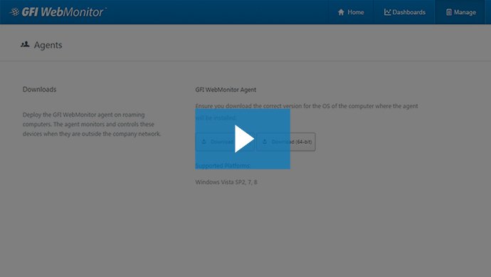 More infoCompany laptops should be used appropriately. GFI WebMonitor enables you to apply filtering policies and web monitoring even when not connected to the corporate network.