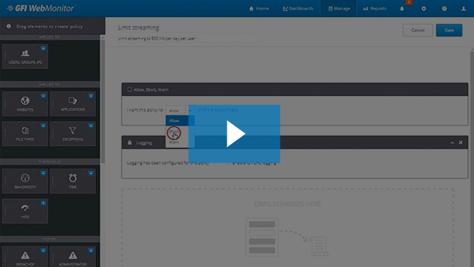 More infoGFI WebMonitor gives precise control to IT administrators, enabling them to identify large downloads and block them in real time.