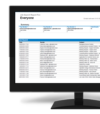 The Job Search Report is a useful tool to gauge the mood of your workforce. It can show you who is emailing recruiters and receiving alerts from job search sites, so you can address any HR issues directly before it’s too late.