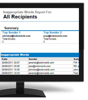 Inappropriate emails can land your company in hot water with harassment lawsuits. You can tell a lot about a user and their habits by the words used in their emails, which is why the Inappropriate Words Report in MailInsights will help you track and manage offenders.