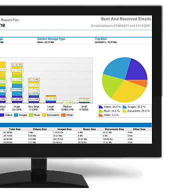Even though the cost of storage is going down, the average file size sent by email is increasing. GFI Archiver offers you retention policies based on file type and sizes, and the Email Storage Report in MailInsights shows you what is being stored in the archive and by whom. Use this report to alert users and to create the appropriate retention policies and win back control of your storage costs.