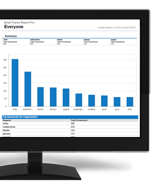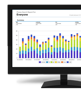 You can learn a lot about what your employees are thinking from email. Measure sentiment and analyze content based on user-defined key words or phrases. With the Phrase Search Report you can find and analyze emails on a particular subject or related to a particular project.