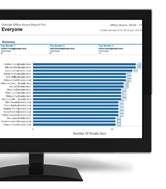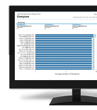 Some people need to communicate messages to a wide audience on a regular basis, but others include many colleagues in CC even when they are not directly involved. These extra emails are a great waste of time and adversely affect the productivity of the people receiving them. The Internal Spammers Report will help you identify potential time-wasters and protect your resources.