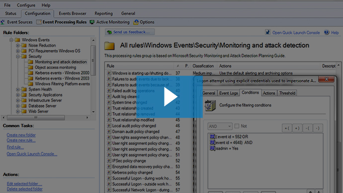 More infoClassify log records for particular conditions and configure event log monitoring rules for a specific computer or a group of computers.
